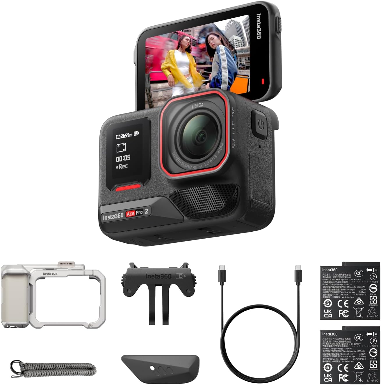 Insta360 Ace Pro 2 Pack Xplorer Argent Lunaire - Caméra d'action étanche 8K co-conçue avec Leica, capteur 1/1,3", Double Puce d'IA, qualité en Basse lumière, Audio avancé, Double Batterie