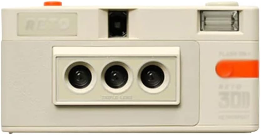 ZXNQ 3D tridimensionnel Classic Appareil Photo, 35mm Flash Appareil Photo argentique,Blanc