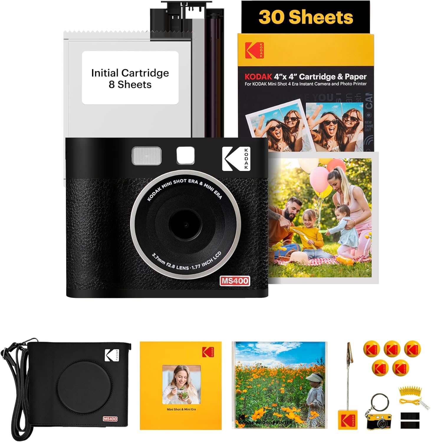 KODAK Mini Shot 4 Era Cadeau Noel 4PASS 2-in-1 Appareil Photo Instantané et Imprimante Photo Portable 10x10cm Lot Accessoire avec 68 Feuilles, Noir