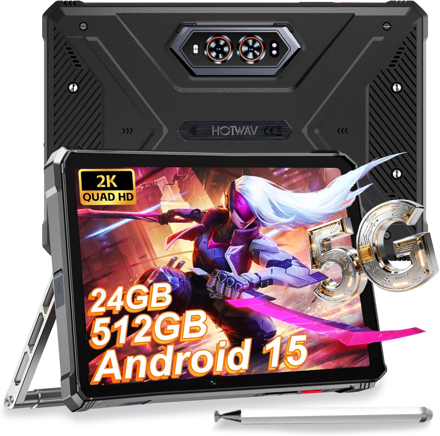 HOTWAV R9 Ultra 5G Tablette Incassable, 24Go + 512Go/TF 2To Android 15 Tablette Tactile, Écran 11" 2K FHD+ Tablette avec Stylet, 20080mAh, 64MP+16MP, Dual SIM/WLAN 5/Octa Core/Gemin AI/IP68etIP69K/OTG