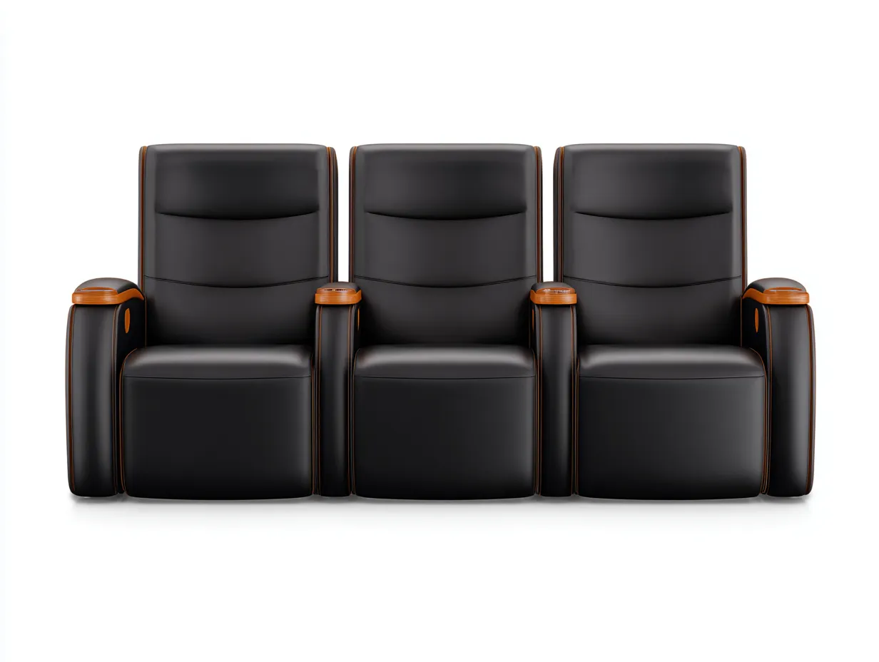Canapé relax trois places cuir synthétique dossier ergonomique 210x95x105 cm - Noir - Confort cinéma maison