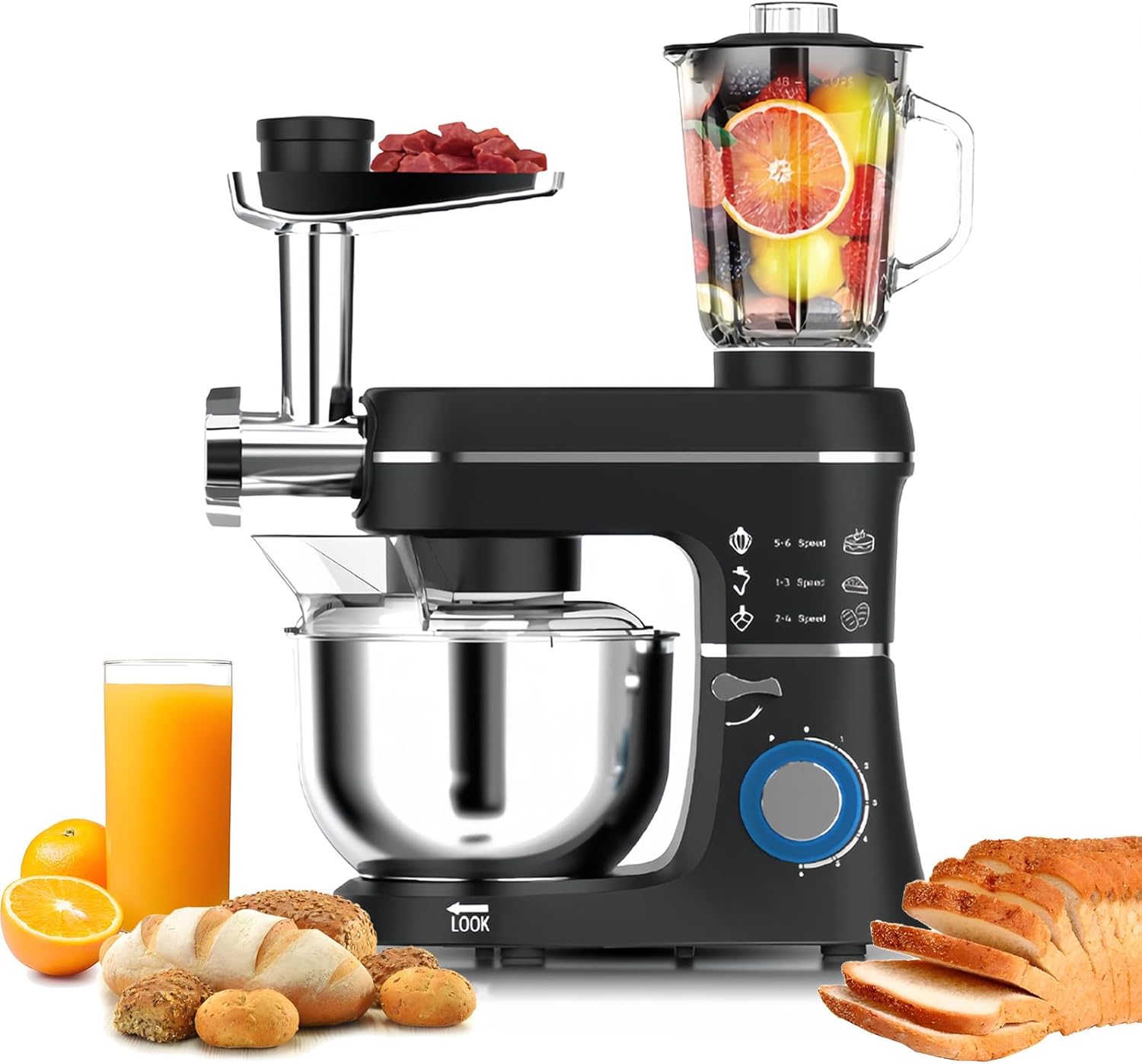 Fentic 5 en 1 Robot Pâtissier - 1400W - Av. Hachoir à Viande, Mixeur 1,5L, Cutter, Accessoires - Robot Cuisine Multifonctions Av. 10L Bol Mélangeur, Fouet, Crochet Pétrisseur, Batteur,Black