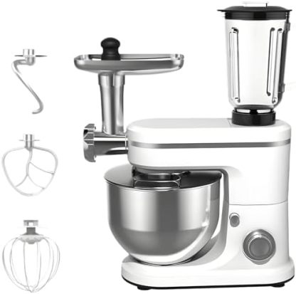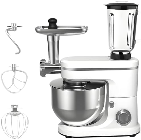 Robot pâtissier 3 en 1 multifonctionnel, robot de cuisine électrique avec extracteur de jus, batteur à pâte à tête inclinable et de nombreux accessoires pour une cuisine polyvalente. Idéal p