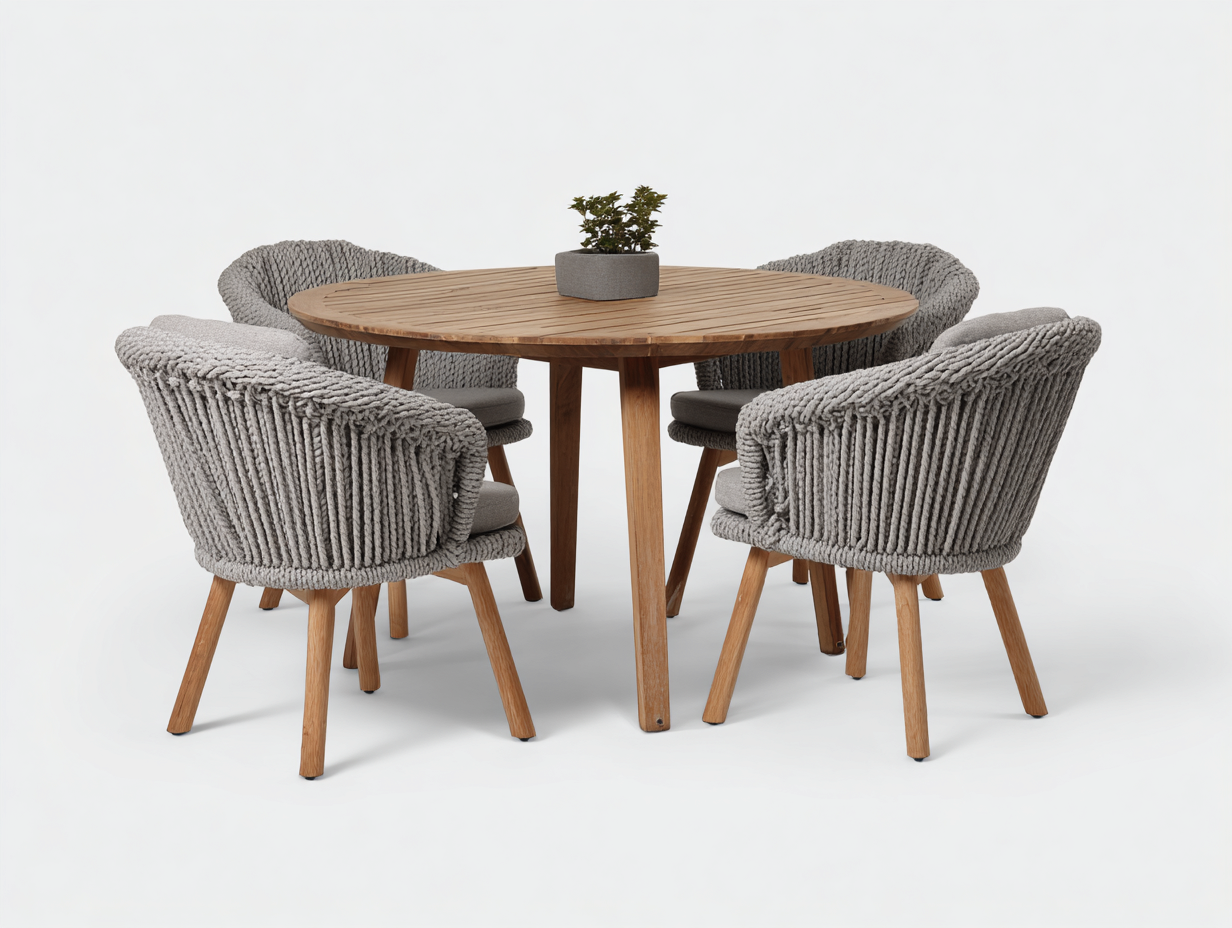 Salon de jardin repas table ronde et 4 fauteuils 120x120x75 cm - marron-gris - ensemble extérieur design moderne